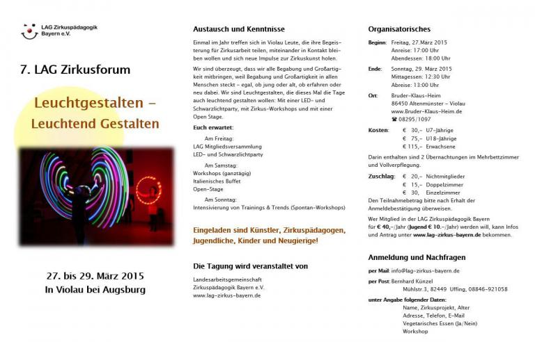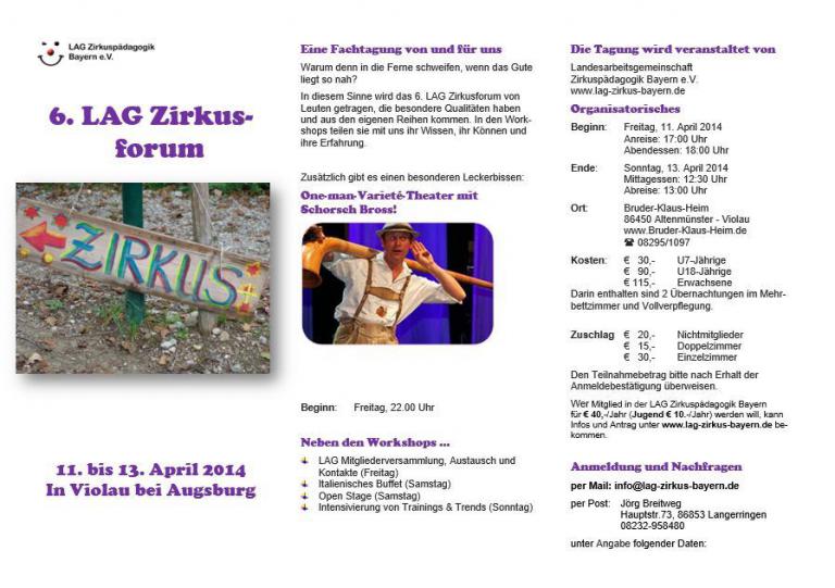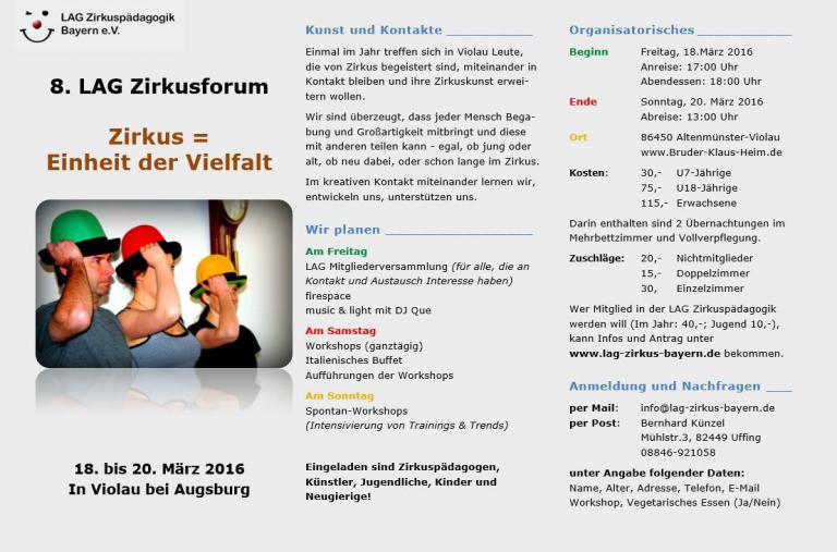 -  8. Zirkusforum 201618. bis 20. März 2016 In Violau bei Augsburg Thema: Zirkus = Einheit der Vielfalt