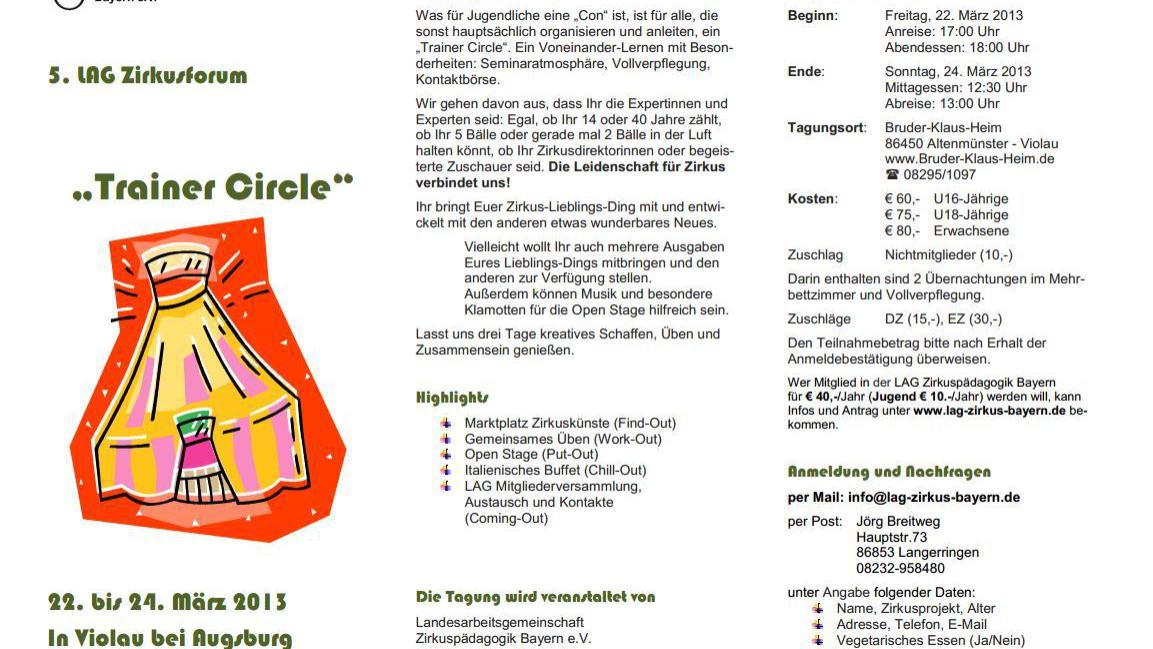 Ihr bringt Euer Zirkus-Lieblings-Ding mit und entwickelt mit den anderen etwas wunderbares Neues. Vielleicht wollt Ihr auch mehrere Ausgaben Eures Lieblings-Dings mitbringen und den anderen zur Verfügung stellen.