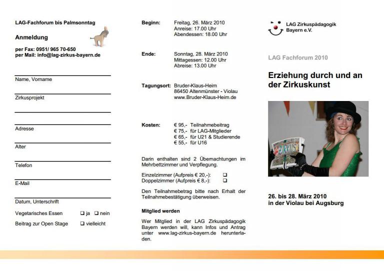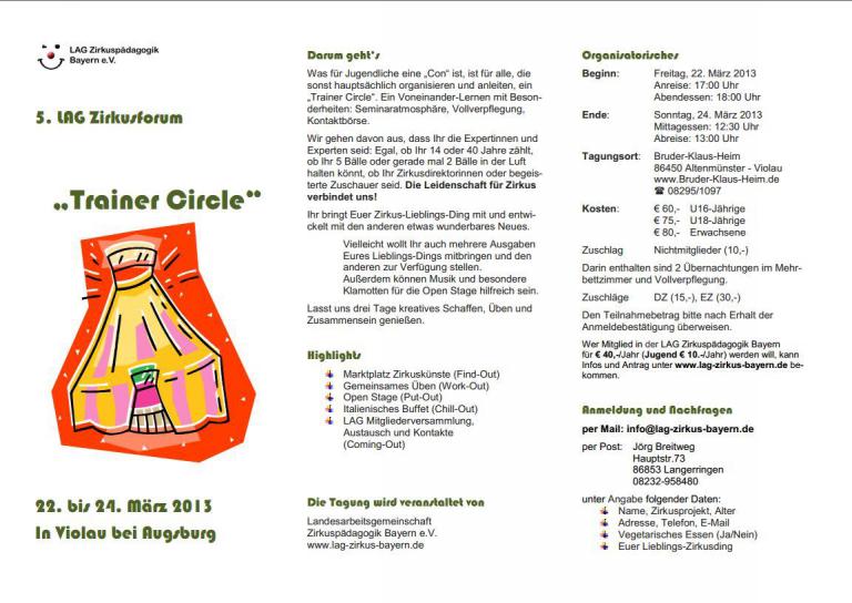 -  8. Zirkusforum 201618. bis 20. März 2016 In Violau bei Augsburg Thema: Zirkus = Einheit der Vielfalt