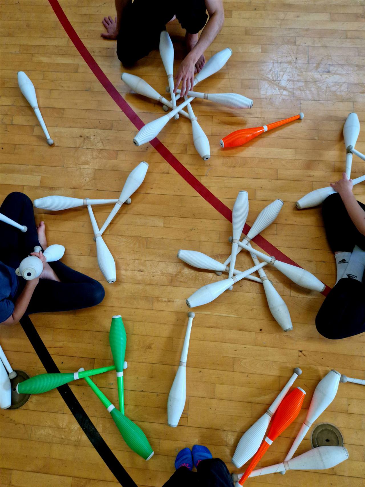 Wir lernen uns gegenseitig über einsteigerfreundliche Jongliermuster kennen. Dabei jonglieren wir zu zweit, zu dritt, oder auch mal als ein einziges großes Gruppengewühl aus Händen.